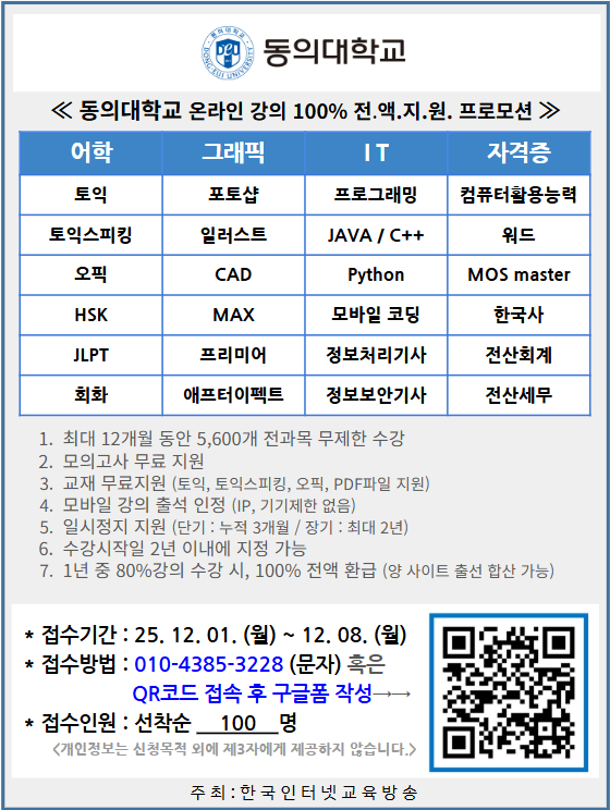 ✅ 모집기간 : 25. 12. 01.(월) ~ 12. 08.(월)