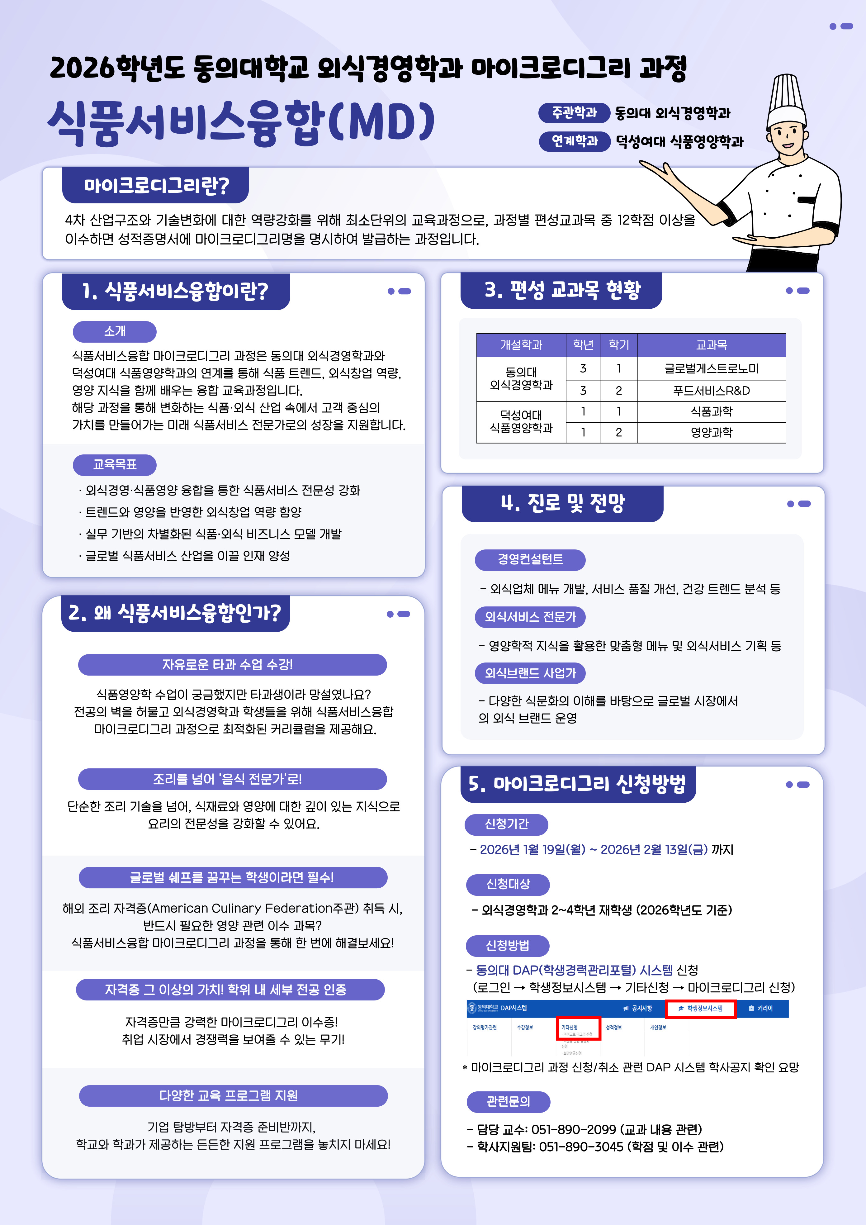 2026학년도 외식경영학과 마이크로디그리 과정 「식품서비스융합」 신청 안내 및 홍보