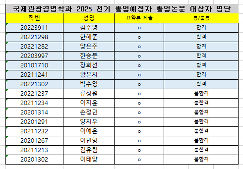 [공지] [국제관광경영학과] 2025 전기 졸업 졸업논문 요약본 결과 통보