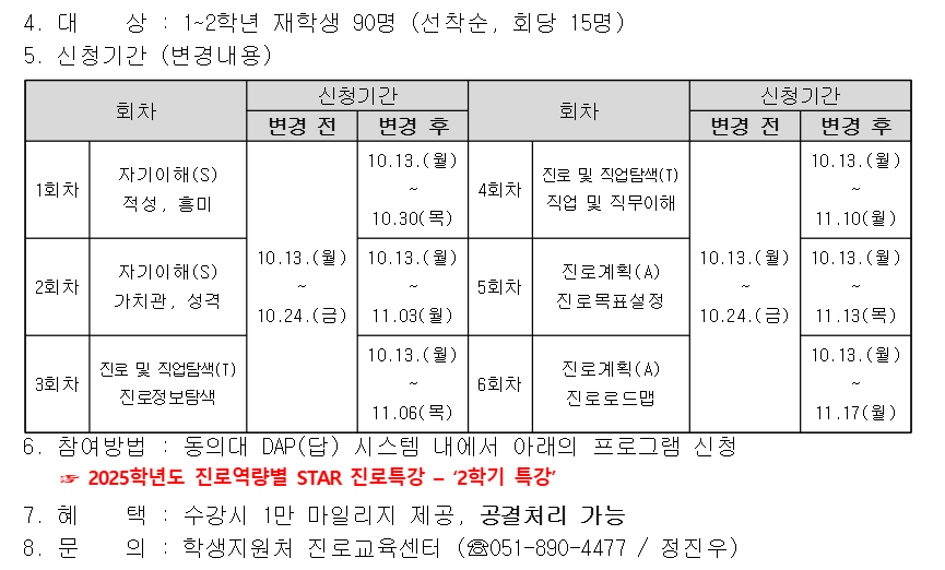 [ [재학생맞춤형고용서비스사업/국고-빌드업] 2025학년도 2학기 진로역량별 STAR 진로특강 운영 안내 ]