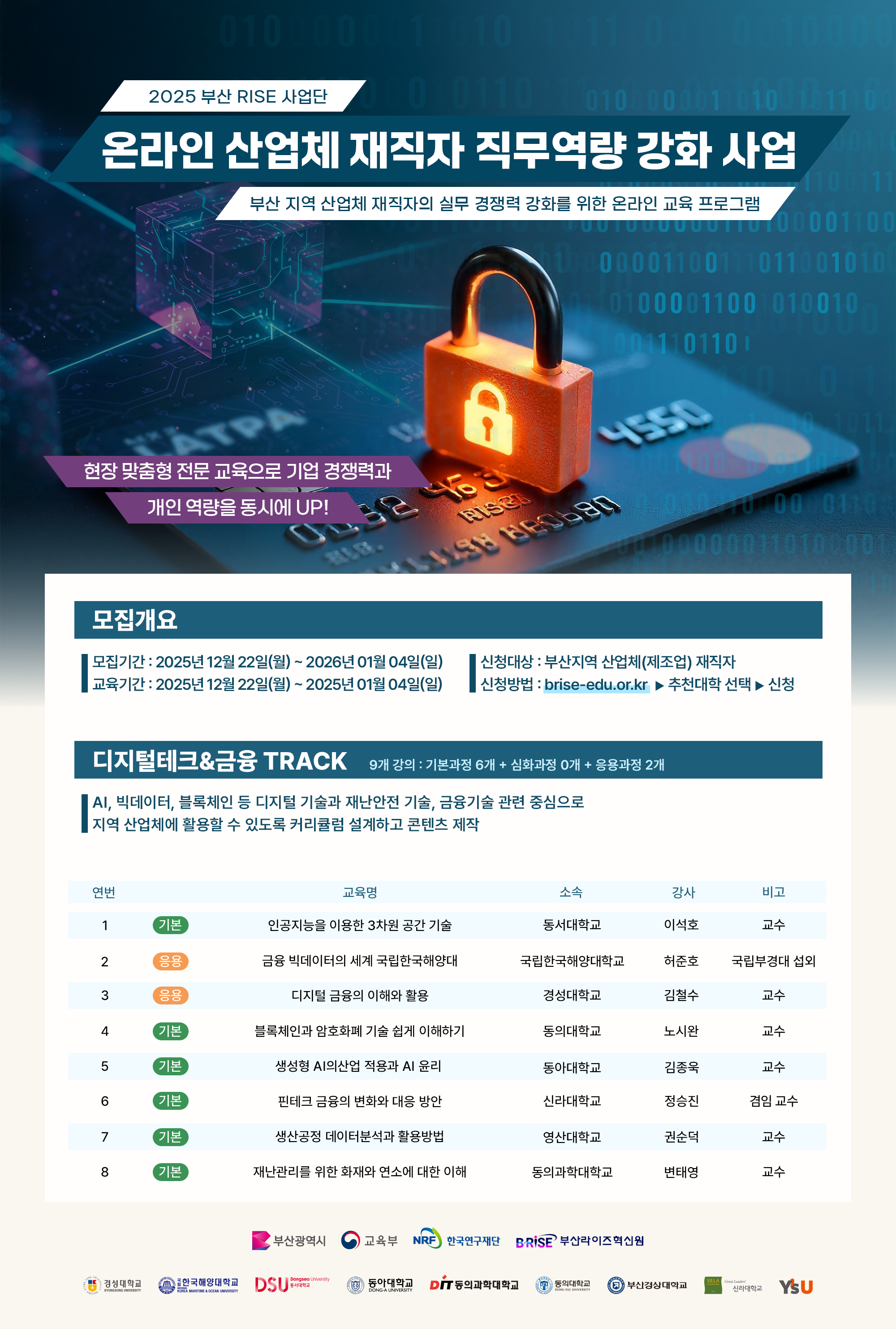 [RISE] 2025년 온라인 산업체 재직자 직무역량 강화 사업 참가자 모집 안내(디지털테크&금융 트랙)